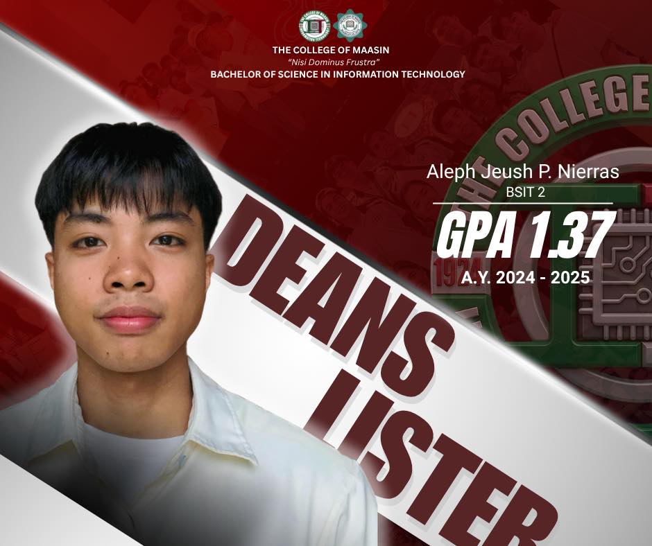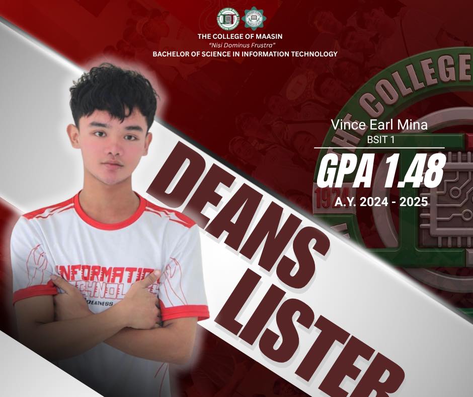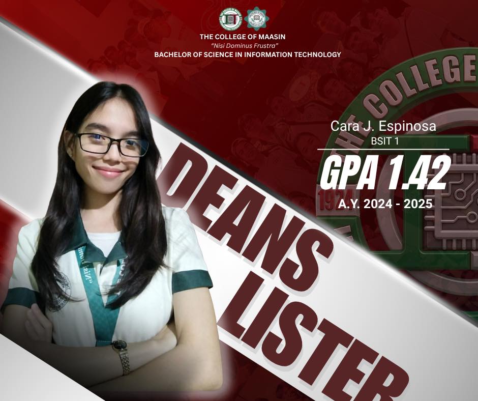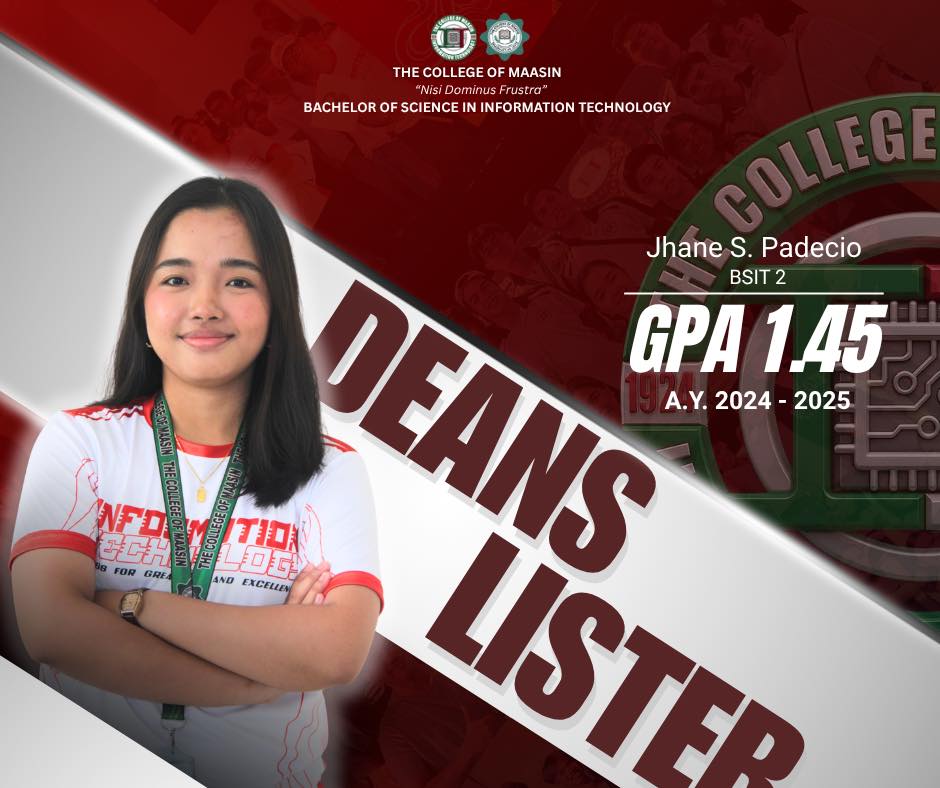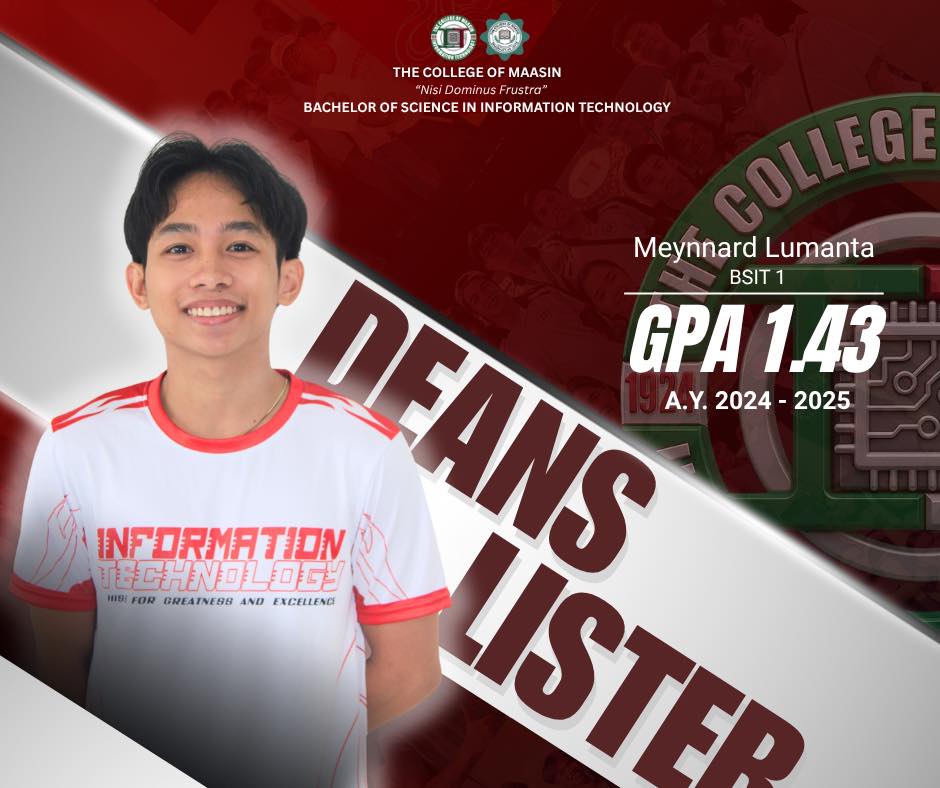 The BSIT Department proudly honors the exceptional students of the Bachelor of Science in Information Technology (BSIT) program who earned a place on the Dean’s List for the 2nd Semester of Academic Year 2024–2025.