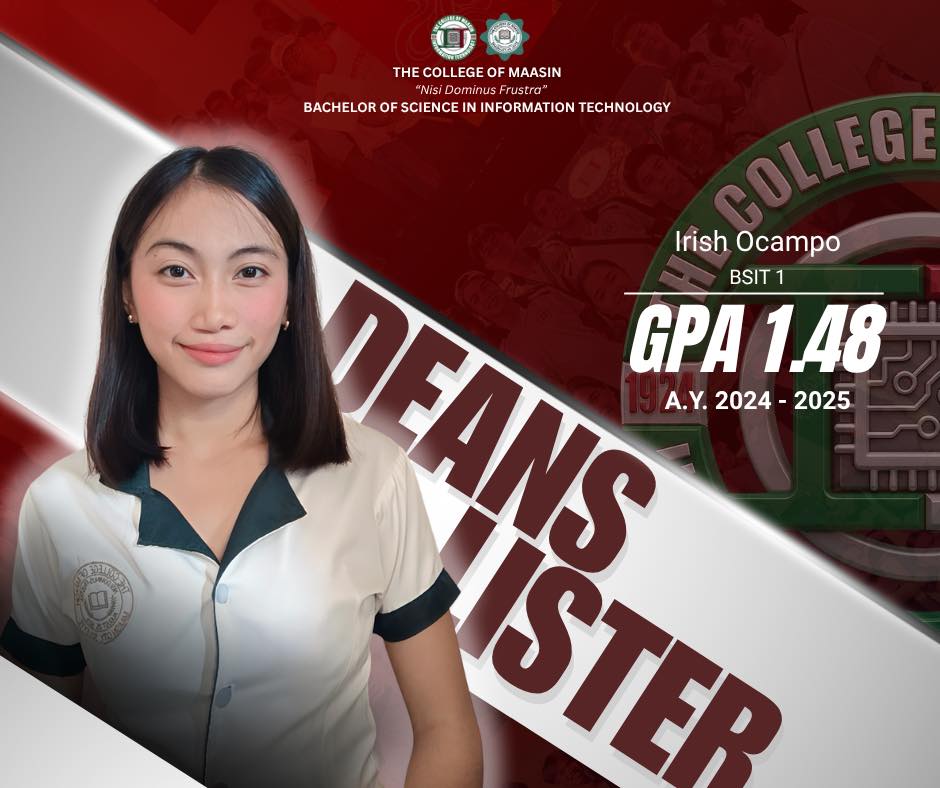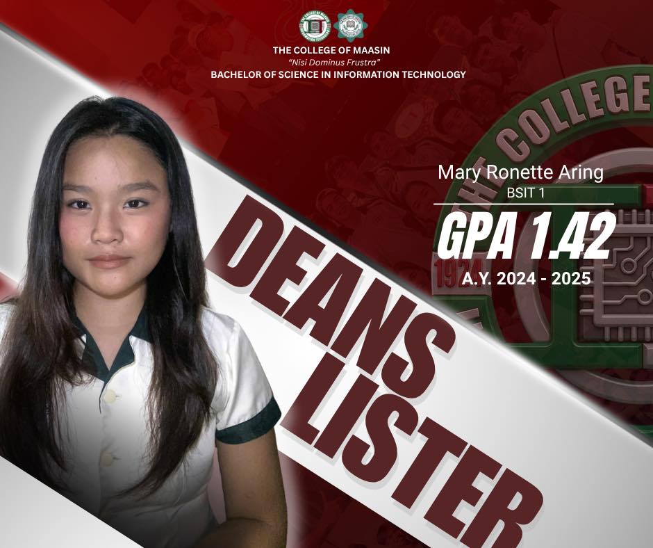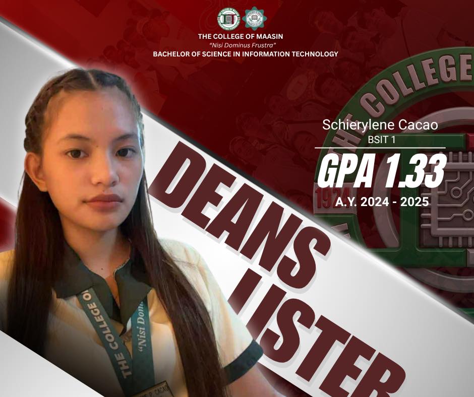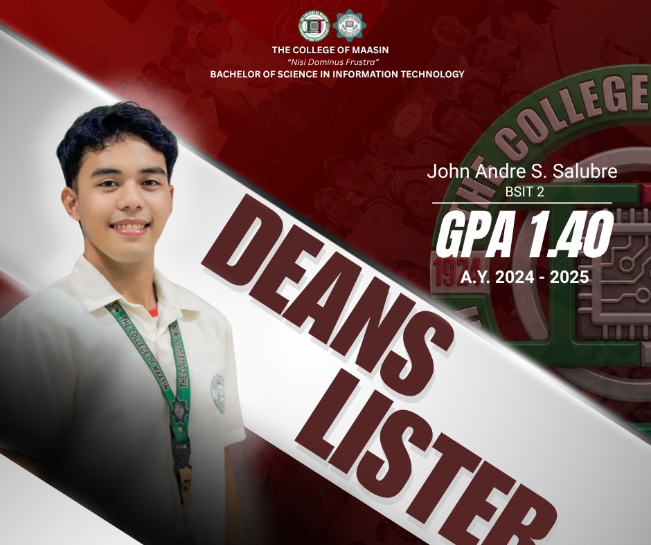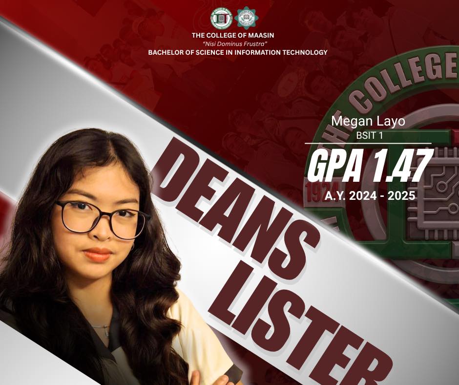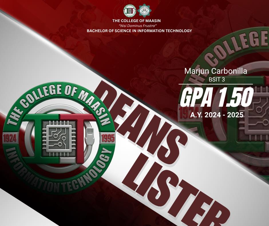 The BSIT Department proudly honors the exceptional students of the Bachelor of Science in Information Technology (BSIT) program who earned a place on the Dean’s List for the 2nd Semester of Academic Year 2024–2025.